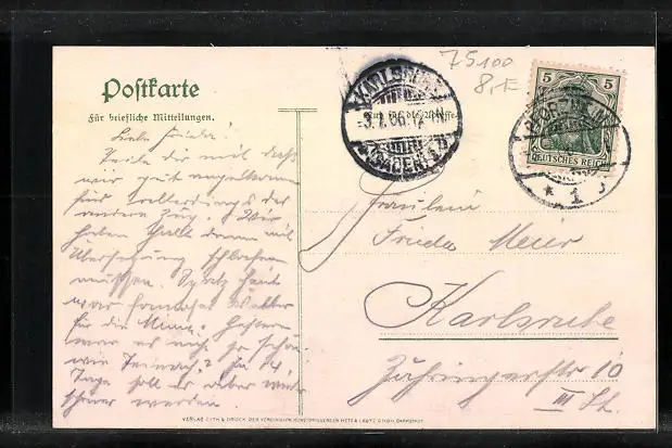 alte Ansichtskarte, gelaufen 1906, guter Zustand