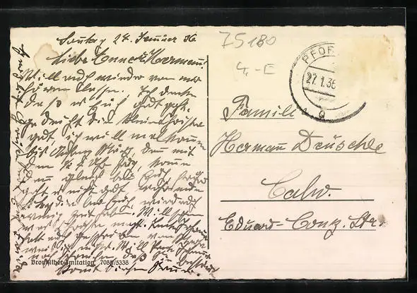 alte Ansichtskarte, gelaufen 1936, Briefmarke tw. entfernt, guter Zustand
