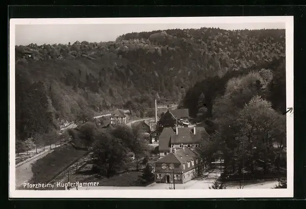 AK Pforzheim, Kupferhammer aus der Vogelschau