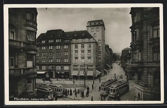 AK Pforzheim, Leopoldsplatz mit Strassenbahn