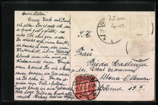 gelaufen 1922, Eckknick oben li., Briefmarken entfernt, guter Zustand