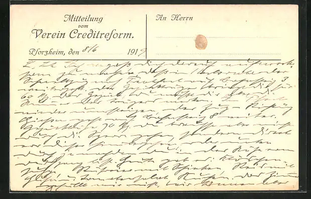 AK Pforzheim, Mitteilung vom Verein Creditreform