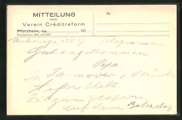 AK Pforzheim, Mitteilung vom Verein Creditreform