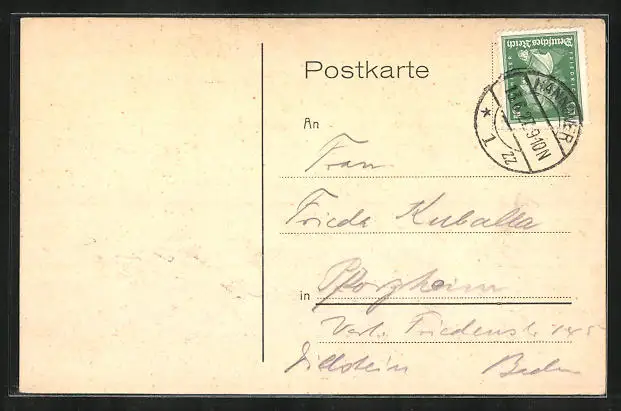 alte Ansichtskarte, gelaufen 1927, guter Zustand