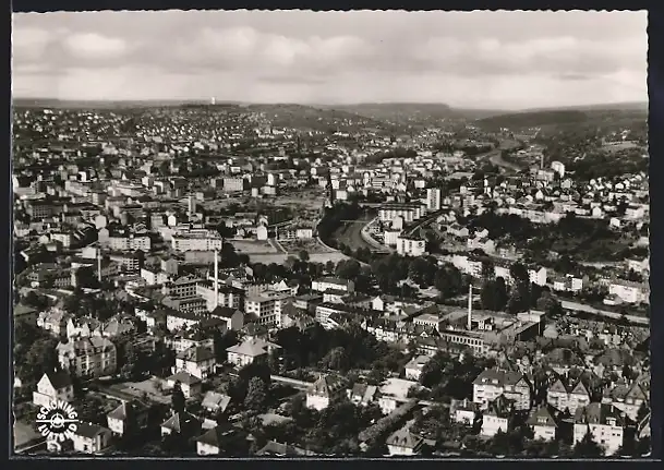 AK Pforzheim, Ortsansicht aus der Vogelschau