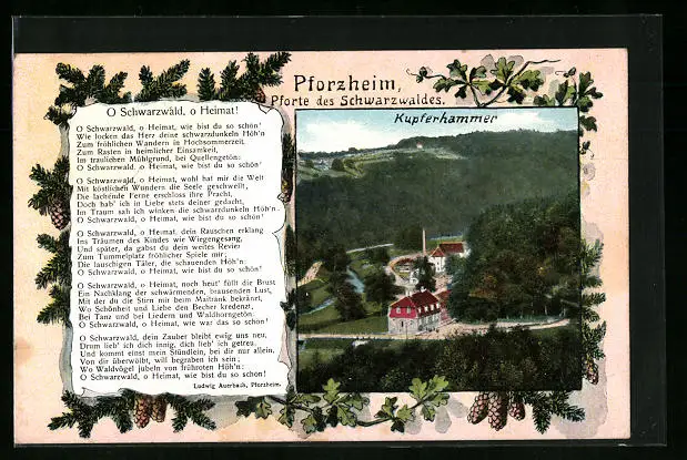 AK Pforzheim, Ortsansicht mit Kupferhammer