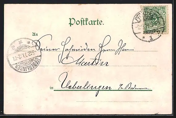 alte Ansichtskarte, gelaufen 1899, guter Zustand