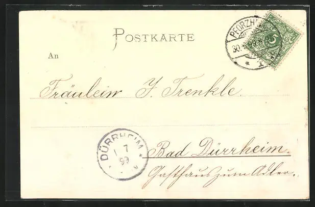 gelaufen 1899, kleiner Einriss links oben, guter Zustand
