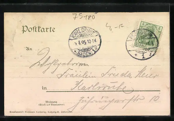 alte Ansichtskarte, gelaufen 1905, Stempelspur, guter Zustand