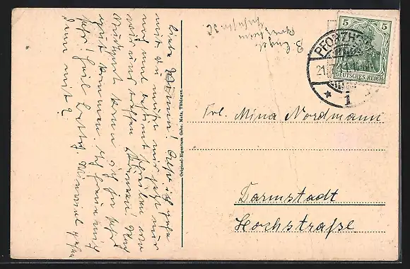 alte Ansichtskarte, gelaufen 1911, Stempelspur, Eckknick rechts oben, guter Zustand