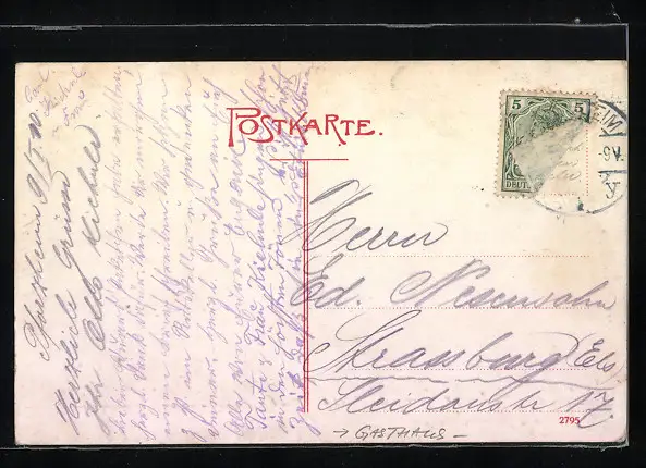 alte Ansichtskarte, gelaufen, Briefmarke eingerissen, guter Zustand