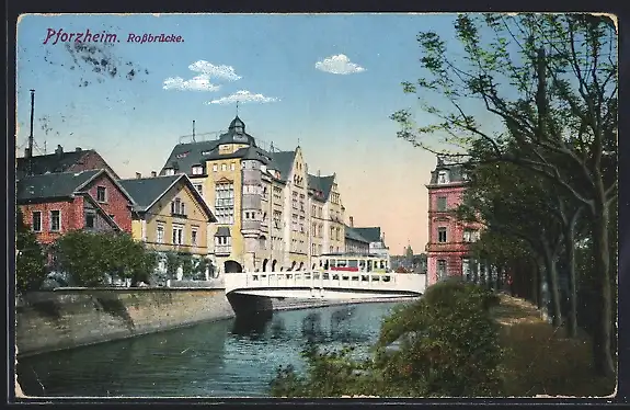 AK Pforzheim, Rossbrücke mit Strassenbahn