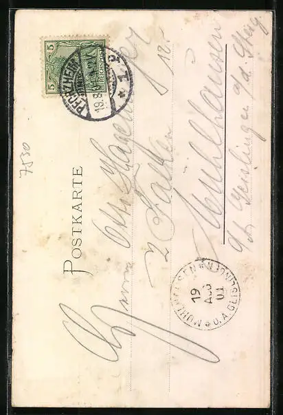 gelaufen 1901, Bugspur unten mittig, guter Zustand