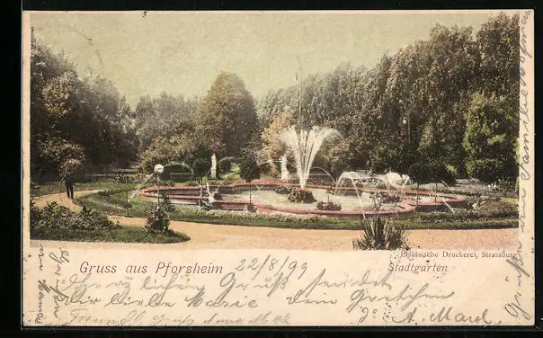 AK Pforzheim, Springbrunnen im Stadtgarten