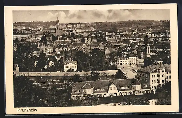 AK Pforzheim, Stadtansicht aus der Vogelschau