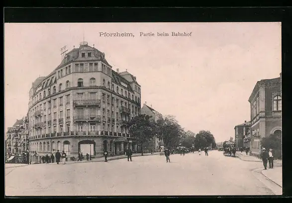 AK Pforzheim, Strassenpartie beim Bahnhof