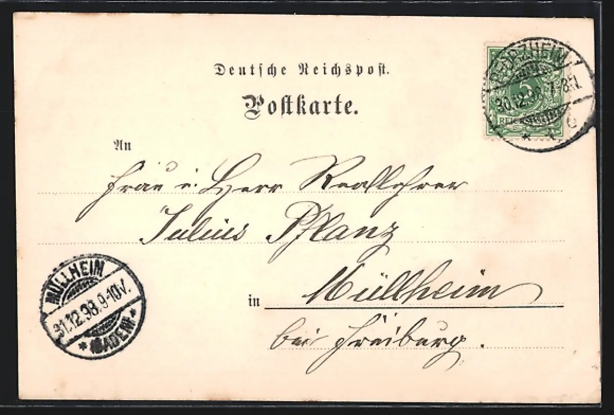 alte Ansichtskarte, gelaufen 1898, Eckknick li. unten, guter Zustand