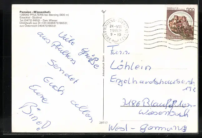 AK Pfulters bei Sterzing, Pension Wiesenhof, Aussenansicht mit Liegewiese