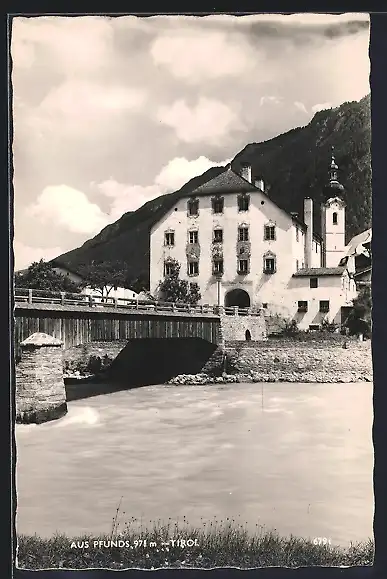 AK Pfunds /Tirol, Blick von der Brücke zur Kirche