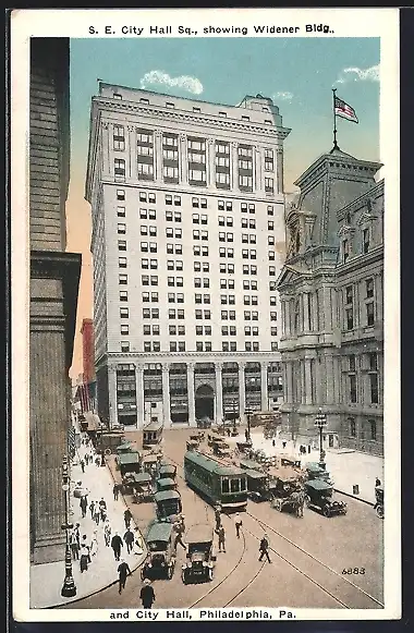 AK Philadelphia, PA, City Hall Sq. showing Widener Building and City Hall, Strassenbahn