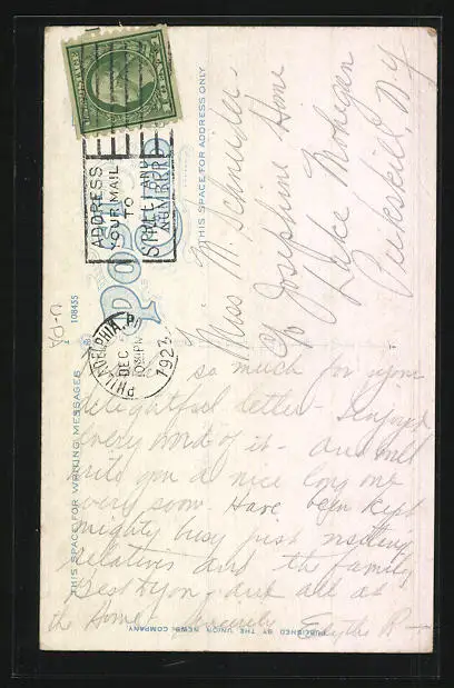 alte Ansichtskarte, gelaufen 1923, Eckknicke li. oben, minimaler Einriss li. oben, guter Zustand