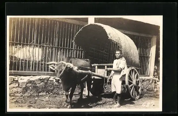 AK Philippinen, Bauer mit einem Ochsenkarren