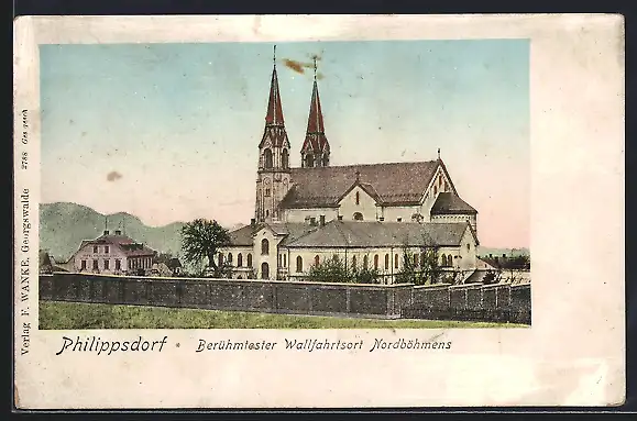 AK Philippsdorf, Ortsansicht mit der Wallfahrtskirche