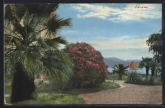 AK Photochromie NR: 1842, Serie 71, Haus am See, Segelboote im Hintergrund