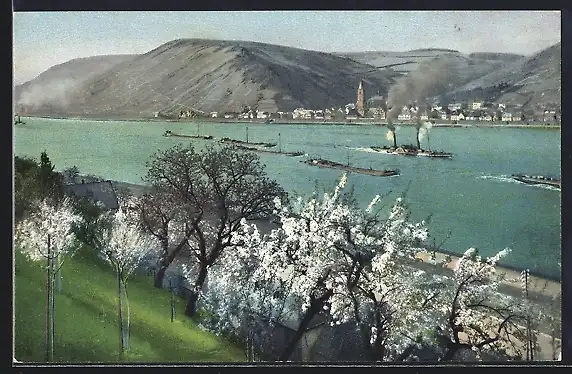 AK Photochromie NR.2415: Lastkähne auf einem Fluss