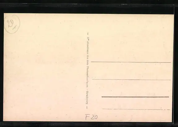 Personenbezogene Daten auf der Rückseite der Karte wurden durch blauen Textmarker unkenntlich gemacht. Die blauen Stellen sind auf die Vorderseite durchgeweicht und wirken sich negativ auf das Postkartenfoto aus