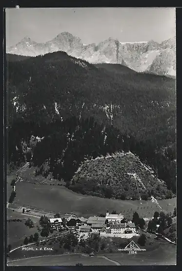 AK Pichl a. d. Enns, Ortsansicht gegen die Bergspitzen