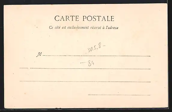 Personenbezogene Daten auf der Rückseite der Karte wurden durch blauen Textmarker unkenntlich gemacht. Die blauen Stellen sind auf die Vorderseite durchgeweicht und wirken sich negativ auf das Postkartenfoto aus