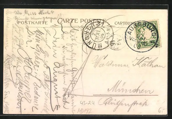 alte Ansichtskarte, gelaufen 1906, Stempelspur, guter Zustand