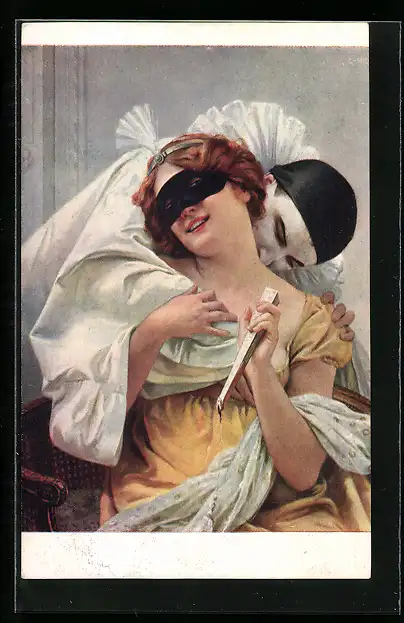 AK Pierrots Triumph, Pierrot küsst Dame beim Maskenfest