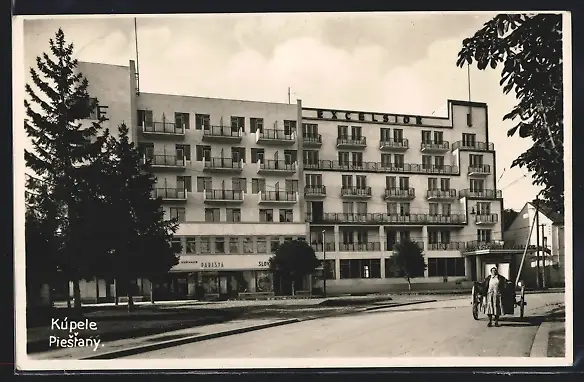 AK Piestany, Kurhaus Excelsior mit Strassenpartie
