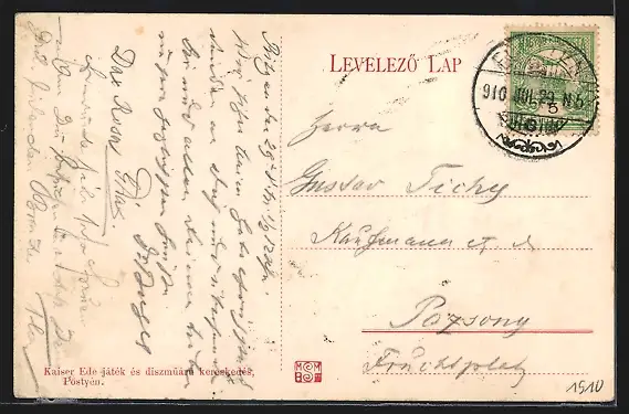 alte Ansichtskarte, gelaufen 1910, Bugspur li. oben, guter Zustand