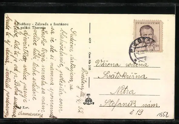 AK Piestany, Záhrada s fontánou y palaci Thermia