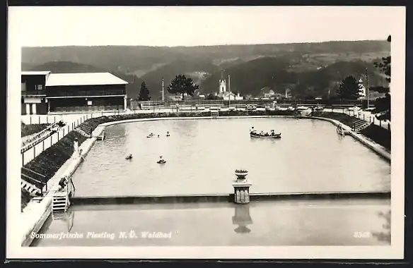 AK Piesting /N.-Ö., Das Waldbad aus der Vogelschau