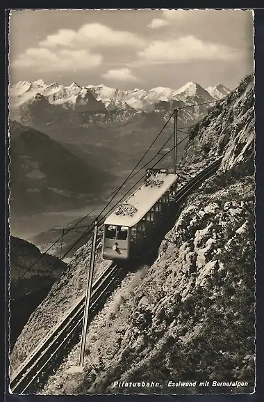 AK Pilatusbahn, Bahn an der Eselwand mit den Berneralpen