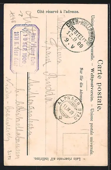 alte Ansichtskarte, gelaufen 1900, Briefmarke entfernt, guter Zustand