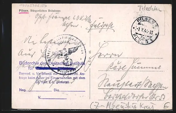 alte Ansichtskarte, gelaufen 1944, Eckknicke re. unten u. li., Stempelspur, guter Zustand