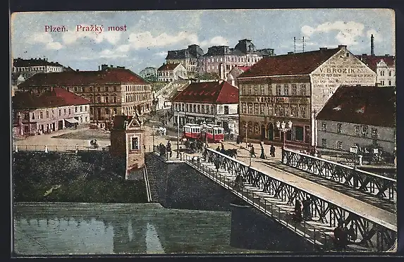 AK Pilsen, Prazky most, Strassenbahn