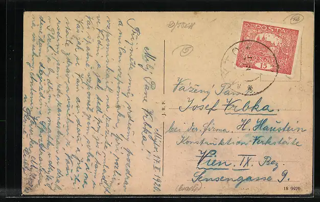 gelaufen 1920, Einriss li. mittig, guter Zustand