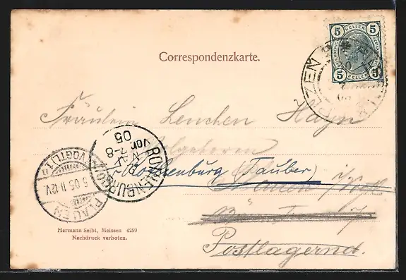 alte Ansichtskarte, gelaufen 1905, guter Zustand