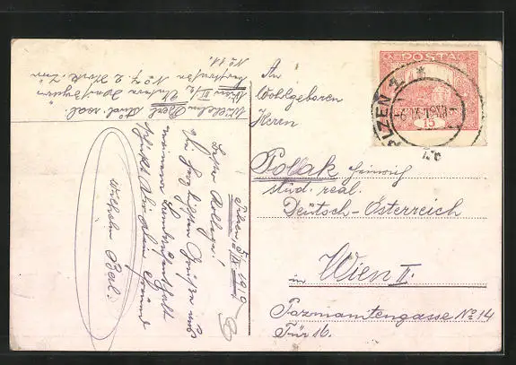 gelaufen 1919, Eckknick links oben, guter Zustand