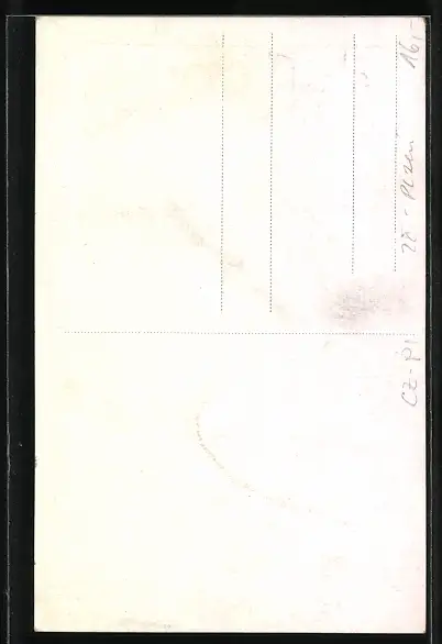 Personenbezogene Daten auf der Rückseite der Karte wurden durch blauen Textmarker unkenntlich gemacht. Die blauen Stellen sind auf die Vorderseite durchgeweicht und wirken sich negativ auf das Postkartenfoto aus