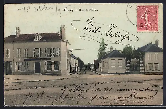 AK Piney, Rue de l`Église avec bâtiments et architecture locale