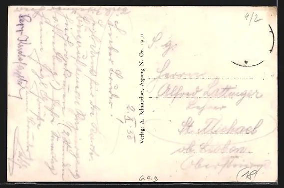 alte Ansichtskarte, gelaufen 1930, Briefmarke entfernt, vorderseitig Klebe- und Papierreste, Abriebspur oben mittig, guter Zustand