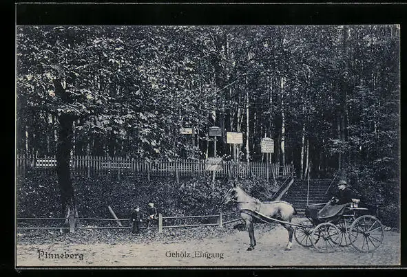 AK Pinneberg, Gehölz Eingang mit Pferdewagen