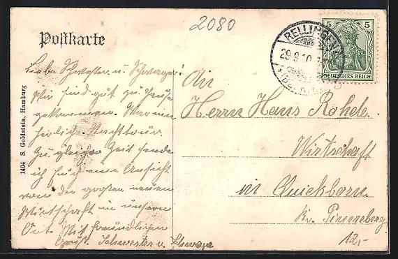 alte Ansichtskarte, gelaufen 1910, guter Zustand